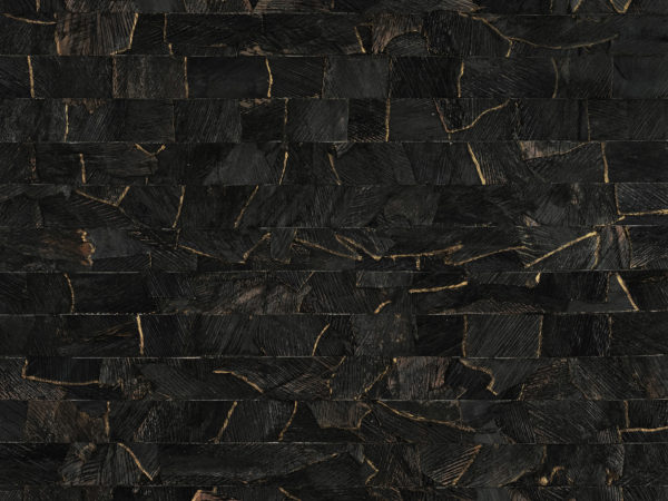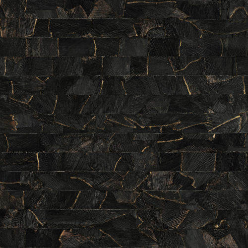 UmweltfreundlichVega: Eine Collage aus getönter Kokosrinde mit rohen Oberflächen, die die innewohnende Noblesse des Materials offenbart.