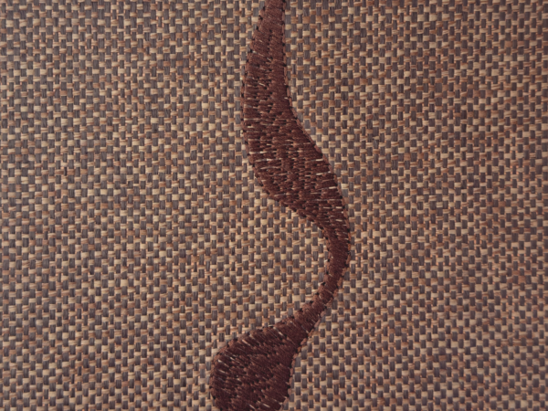 Lokema: Motive aus den Entwürfen von Kim Mupangilaï, fein auf Papiergeflecht gestickt.