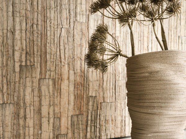 En tant que fabricant de revêtement mural, nous tentons de réduire notre impact environnemental autant que possible à chaque étape: nous privilégions les matières contenant des fibres recyclées, nous recourons à l’énergie renouvelable (panneaux solaires), optons toujours pour des matériaux sans composants nocifs et intégrons à nos collections des matériaux renouvelables tels que le liège ou la soie sari recyclée.