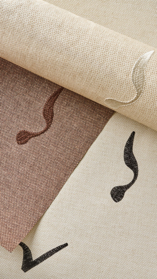 Eco-responsableLokema: Motifs inspirés des pièces de design de Kim Mupangilaï. délicatement brodés sur papier tissé.