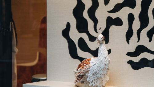 À l’occasion de Paris Déco Off, Omexco a dévoilé une installation de vitrine d’exception, célébrant 50 ans de savoir-faire belge. En collaboration avec Margaux Baert, un paon tridimensionnel a pris vie, entièrement réalisé à partir de revêtements muraux Omexco.