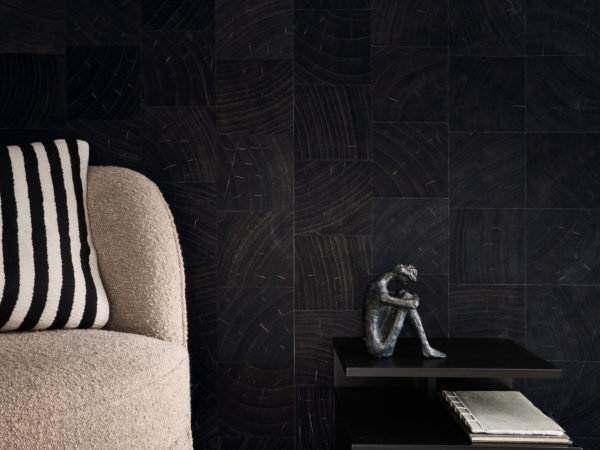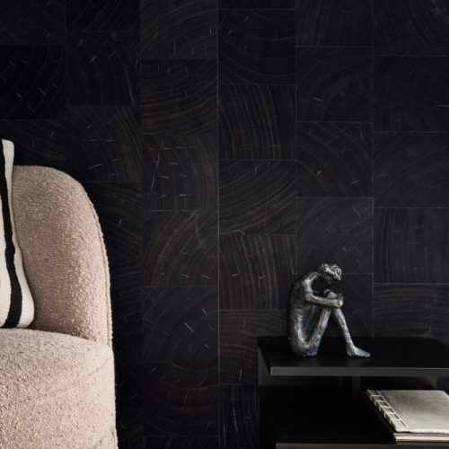 Eco-friendlyUrsa: Wood marquetry unveiling the memory of the trunk, enhanced by a refined metallic background.