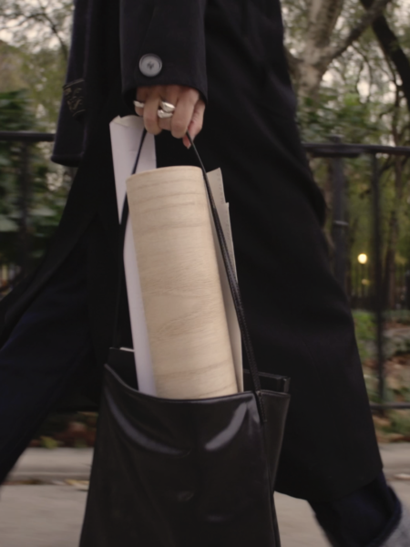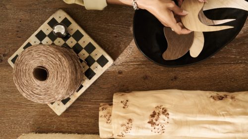 With wood as the central material of the collection, the chromatic colour palette is drawn directly from the natural materials. The collection embraces soft wood shades, complemented by greens and ochres, inspired by organic materials. Black, Kim Mupangilaï’s signature colour, adds contrast and depth throughout the collection.