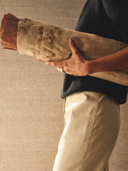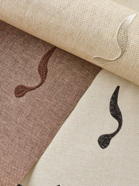 This collaboration with Kim Mupangilaï resulted in an exclusive collection, where material and relief come to life through meticulous craftsmanship using wood, raffia, and sisal— the designer’s signature materials. The collection revolves around four patterns and three plain designs.